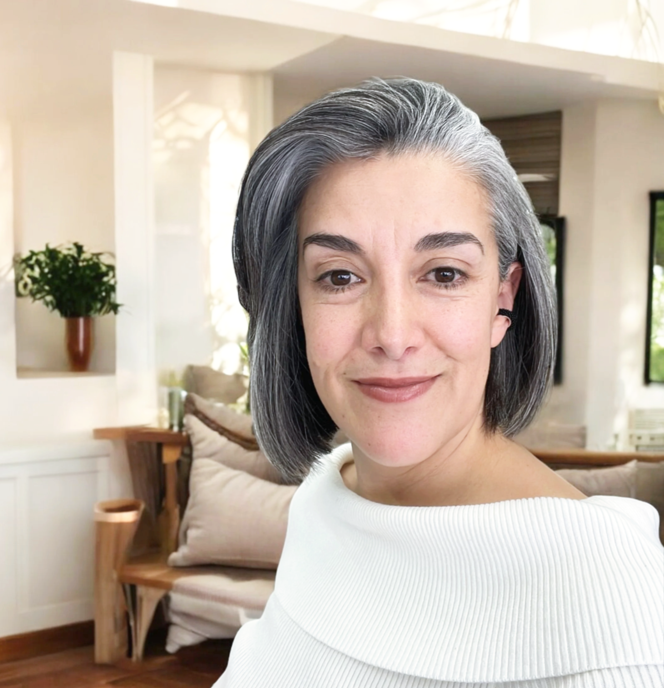 Tadasana con giro de cabeza suave,